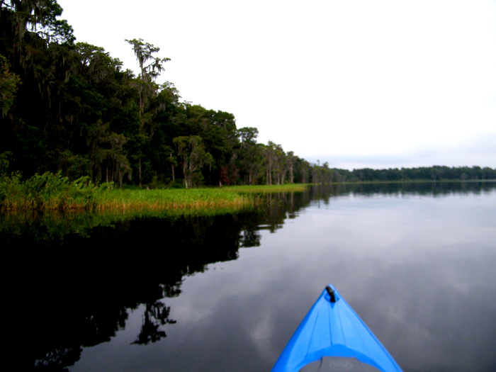 The maps claim there’s a canal leading to Little Lake Santa Fe, and I suppose there is one, after a fashion, but it seems only to be navigable by reptiles and birds. No matter, I simply paddled to the middle of the lake, kicked back, and watched the storm clouds gather over the south shore. Even the sound of the trucks downshifting on 301 fit in somehow. I regretted having to paddle back to the truck.