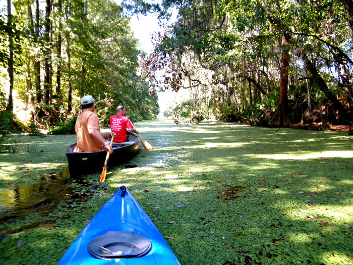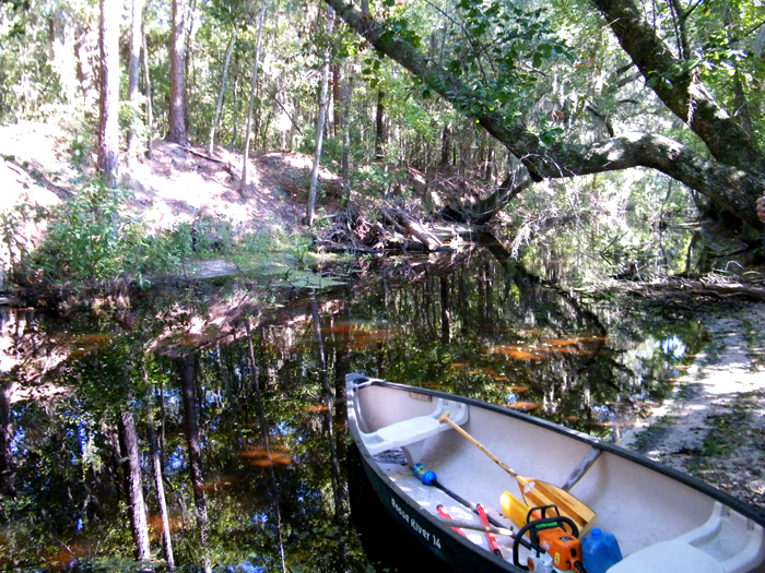 The last time I pointed my boat down this canal, it looked to be more trouble than it was worth, especially near sundown. It appeared to be overgrown and thick with ominous shadows. So it was that I was expecting a good, old-fashioned bushwhacking expedition today when I paddled it with some friends. We even brought along a chainsaw and some clippers, but we never got to use these, because the canal is completely navigable all the way through to Little Lake Santa Fe.
