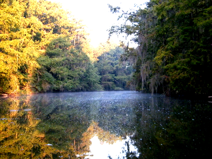 I have yet to head down Camps Canal without observing alligator behavior that I haven’t elsewhere. This time a gator big enough to create a large wake even when it was under water pulled out in front of my boat and swam in front of it for 100 yards or so. Even when it submerged, it continued in front of me (and, guess what, a gator can outpaddle anyone) and seemed to refuse to let me pass. I would have happily done this the whole way down the canal, but it required all my concentration. Eventually, I splashed my paddle and it pulled to the side, submerged, and let me pass. Later, at the end of the canal, I paddled into the low canopy among the cypress knees to see if it cleared up ahead and another, smaller gator appeared and swam rapidly right for me. Another day perhaps.