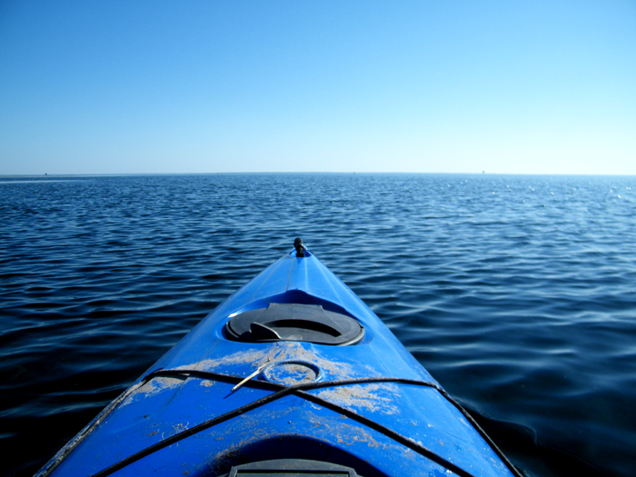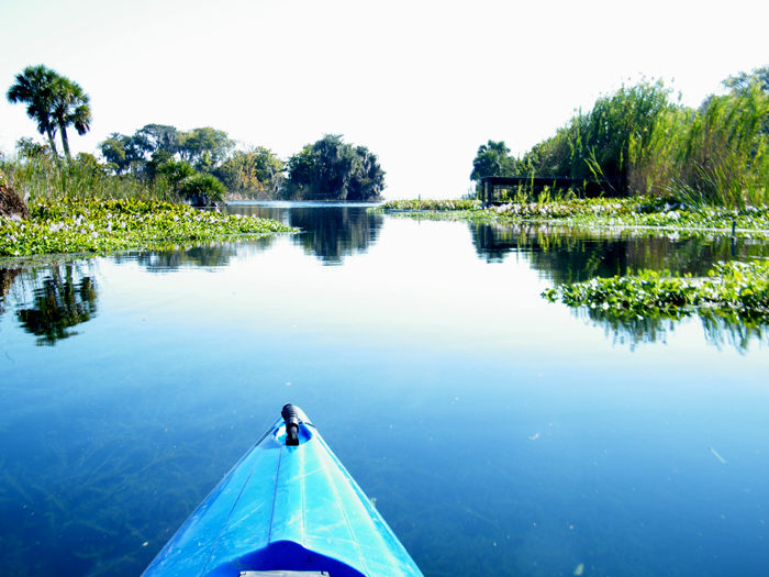 It took a half mile’s paddle past a flotilla of yachts and leather-skinned dowagers to actually get from the springs to the lake. The springs is the clearest water I’ve ever put my boat in, schools of mullet streaming past underneath, many of them jumping two feet out of the water. Finding where the lake proper begins is obvious, as the water goes from glass smooth to choppy immediately.