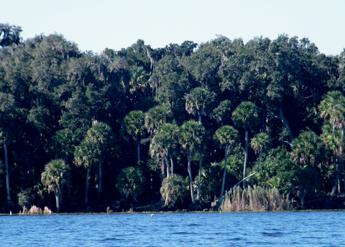 The far shore on Lae George is so distant that to these aging eyes it might well have been the water horizon itself. In fact, everything about Lake George seems a mix of salt water and fresh water: the sandy bottom, the abundant palms on shore, the chop. The water itself is surprisingly clear, with visibility up to three feet or so, and made for a show the whole way. Occasionally, beside me I would see a large disturbance in the water and would look over, hoping to see what gators do when they are trying to get away, but I saw nothing but the churned up bottom.