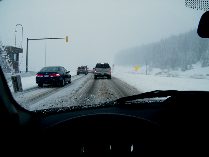 Just getting here turned out to be the riskiest part of this outing. Front Range weather has always been schizoid. I’ve seen afternoon snow in June in Denver on the same day I wore shirt sleeves in the morning. In this case, it was 60 degrees in Denver, but by the time I headed up Route 40 to Grady Lake, the temp had dropped to 28 and snow and ice covered the entire road. I knew I had 5 miles of switchbacks ahead of me, so this Florida boy turned around and headed back down to Dillon, my Plan B. Just as bad if not worse. Cars all over the road and shoulders. But I had no choice but to push ahead to Dillon, as there were no exits until then.