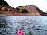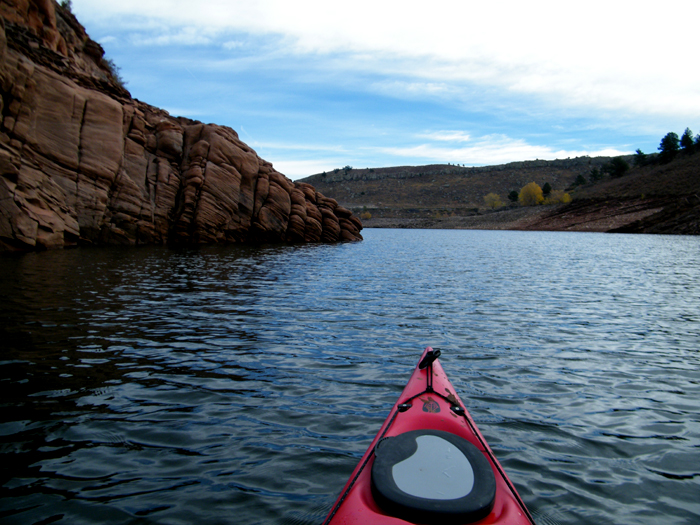 Navigating Horsetooth was entirely pleasant. The weather was everything yesterday’s was not: sunny, clear, breezy and I could see for miles. Miles before I approached Horsetooth, I could tell it used to be a sandstone canyon, now a reservoir, thanks to the damming of four separate rivers. Although this knowledge haunted me the whole time, I was able to get to the place I like to get to when I paddle–a lazy, timeless, meandering state of mind.