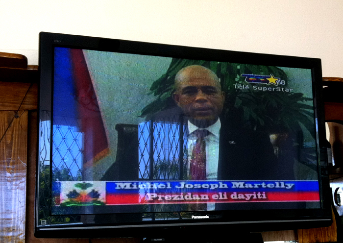 Most of the Haitians I talk to here are excited by president-elect Martelly in a way I haven’t seen since the crowd scenes from the Obama Inauguration. And, yes, Martelly has borrowed a few of Obama’s trademark vocal inflections. As we watched Martelly’s speech yesterday morning, a waiter nearby looked at me, pointed to the TV, and said “Prezidan dayiti” and smiled in such a way that I nearly choked up. Politics is quite real here.