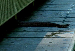 Airboats own the south end of Lake George. Clearly, we were the interlopers and took our lives into own hands when we crossed the channel at the end of the St. John’s. Below the surface, it’s all about the prehistoric garfish, one of whose skulls I proudly display on my patio table. They are everywhere, some up to 5′ long, jumping out the water, prowling the eelgrass. I always forget, but once you get out on a lake of large size, there ain’t much to do. In the case of Lake George, the abundant shoreline is nearly unapproachable, as it shallows out 100 feet away. But what better day than this to overdo it in the sun? Alligator update: they have now made it out of hibernation in full. We saw at least two not too far away from us…and yes they eat garfish.