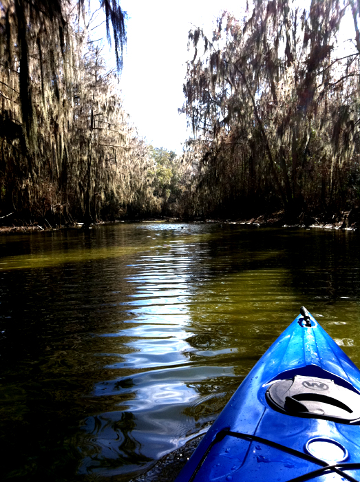 The bottom of my kayak is a document of just how often I have scraped the bottom of every waterway in North Florida. I figured low water, like having to pick up others’ trash on the river, was the price I had to pay to do what I love. So unlike pretty much everyone else in Gainesville on Monday, I greeted the rain with praises of thanksgiving, because I knew it meant high, blessedly navigable water. Where there is high water, there are new places heretofore unreachable.