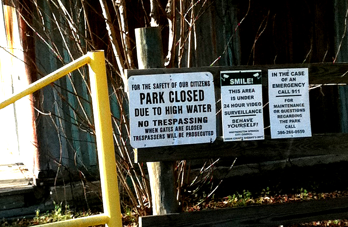 So imagine my disappointment when I rushed out to the Santa Fe just south of Worthington Springs only to find the sign above blocking my progress. If the water was now too high and really too low before, then where was the magic middle ground? Was this simply a budget thing, to take any opportunity to close the “park” to save money? To my eyes, the water wasn’t too high at all. In fact, I would go so far as to say it was perfect.